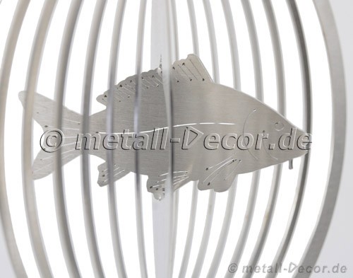 Lieferumfang: Edelstahlwindspiel Kreis Karpfen inkl. Schnur zum Aufhängen.