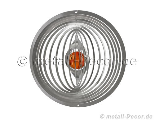 Lieferumfang: Edelstahlwindspiel Großer Kreis mit Kugel, 35 mm inkl. Schnur zum Aufhängen und integrierter Glaskugel.