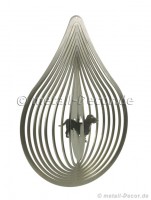 Lieferumfang: Edelstahlwindspiel Motiv Tropfen mit Dackel inkl. Schnur zum Aufhängen.