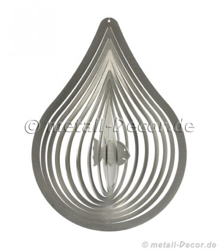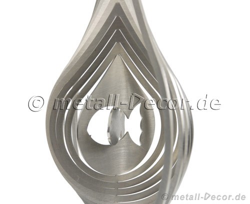 Lieferumfang: Edelstahlwindspiel Motiv Tropfen mit Fisch inkl. Schnur zum Aufhängen.
