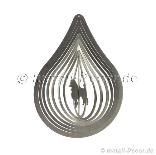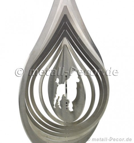 Lieferumfang: Edelstahlwindspiel Motiv Tropfen mit Pudel inkl. Schnur zum Aufhängen.